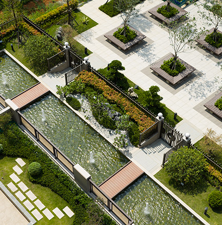 「帝一院」前庭近十米迎賓大道揭開序曲,後院花園廣場近127米綠意長廊串聯全齡VIP會所,